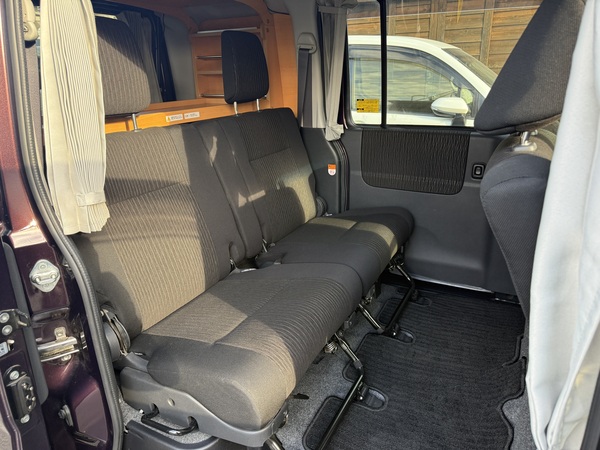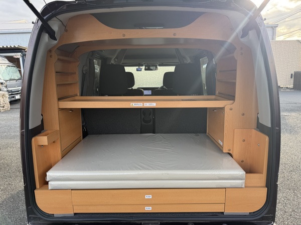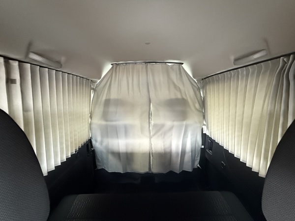 スライドテーブルや収納、カーテンなどのキャンパーとしての装備に